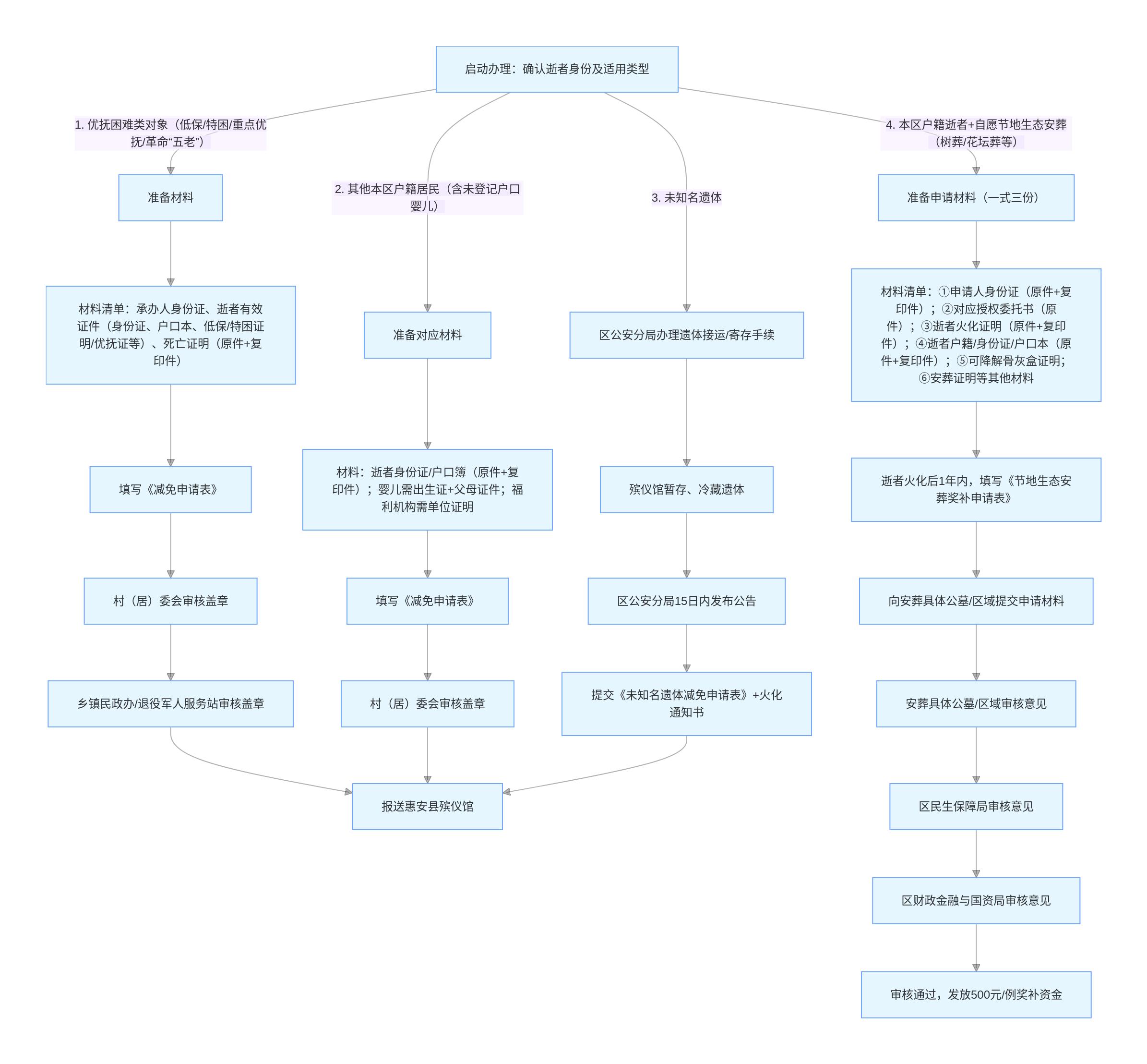 4.具有我区户籍的逝者,其第一顺序法定继承人受托人或逝者生前意愿的受托人自愿选择树葬、花坛葬等节地生态安葬方式的,经申请,给予每例500元奖补。