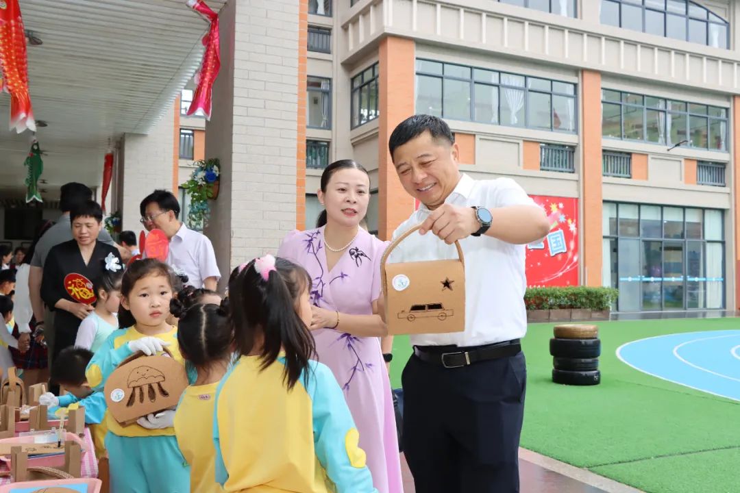 幼儿园小朋友们载歌载舞,在活动中尽情地享受着节日的快乐。“小朋友们好,祝你们节日快乐!”区党工委书记苏延辉走进校园看望慰问少年儿童,向孩子们表达节日的美好祝福。每到一处,他都详细了解幼儿园办学理念及特色、师资力量及幼儿成长情况,实地察看校园教学环境、教学设施及特色课程开展成果。在观摩特色课程开展成果时,无论是充满台商区雕艺文化创意的手工制作课,还是活力四射的体育社团活动,苏延辉都驻足仔细观看,并与孩子们热情交流,询问他们的兴趣爱好,倾听孩子们的梦想与心声,鼓励他们好好学习、全面发展。