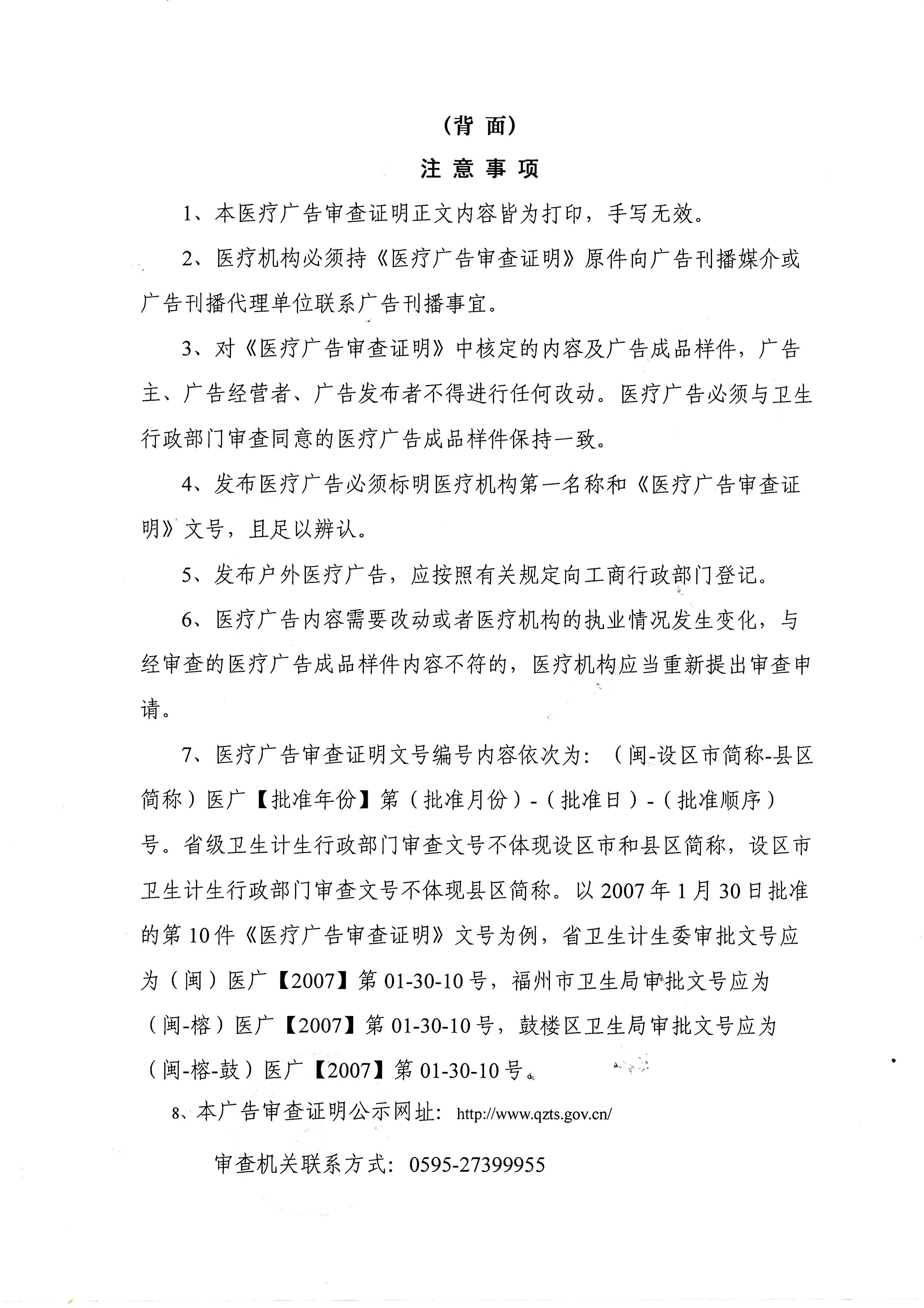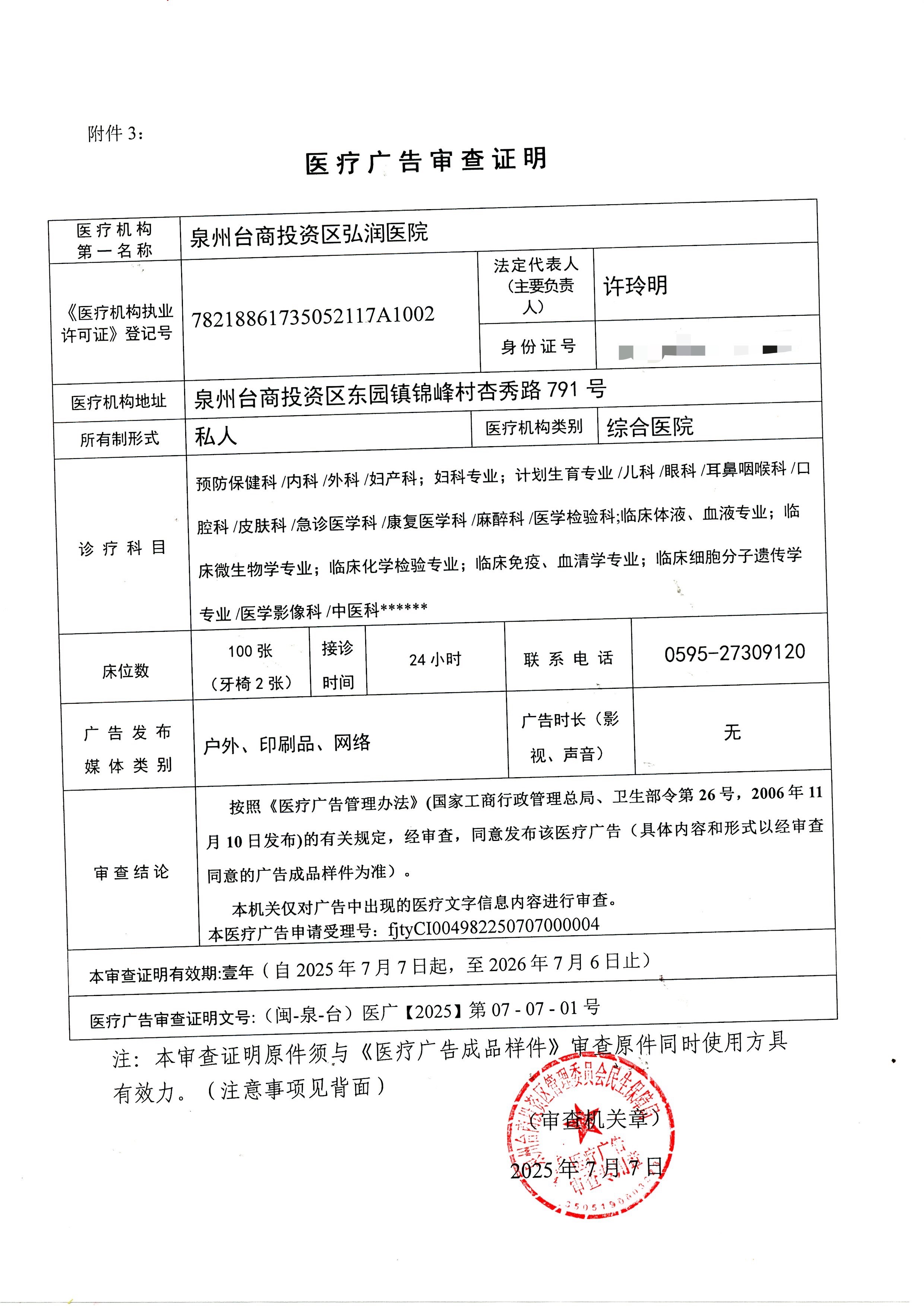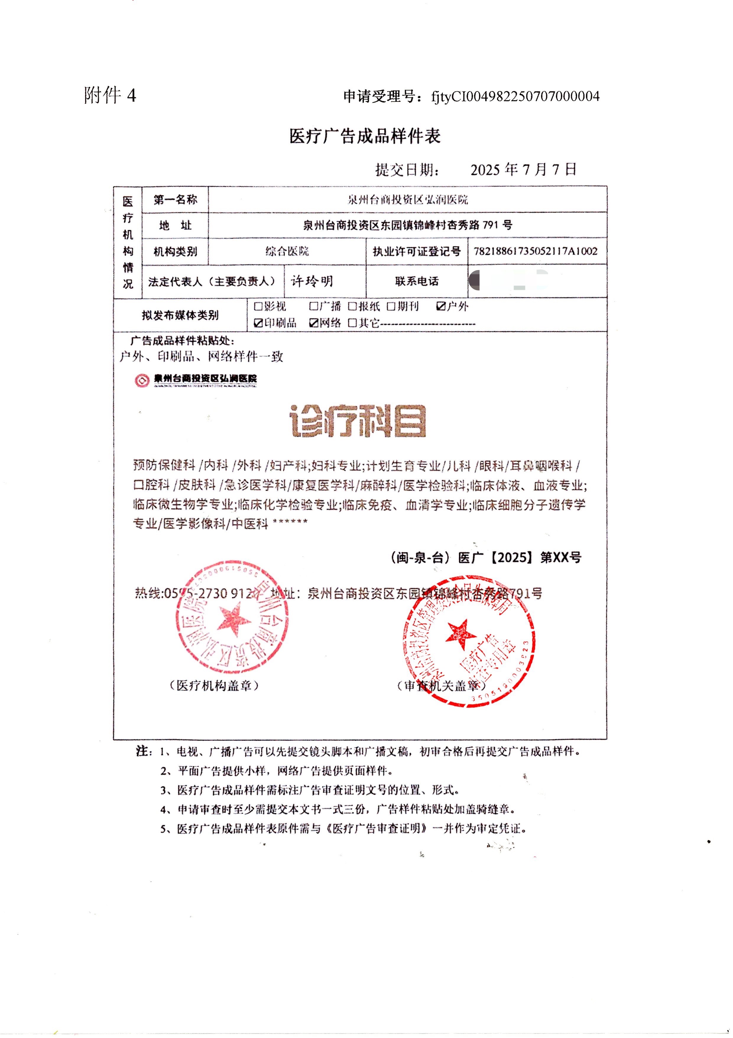泉州台商投资区弘润医院医疗广告审查证明公示