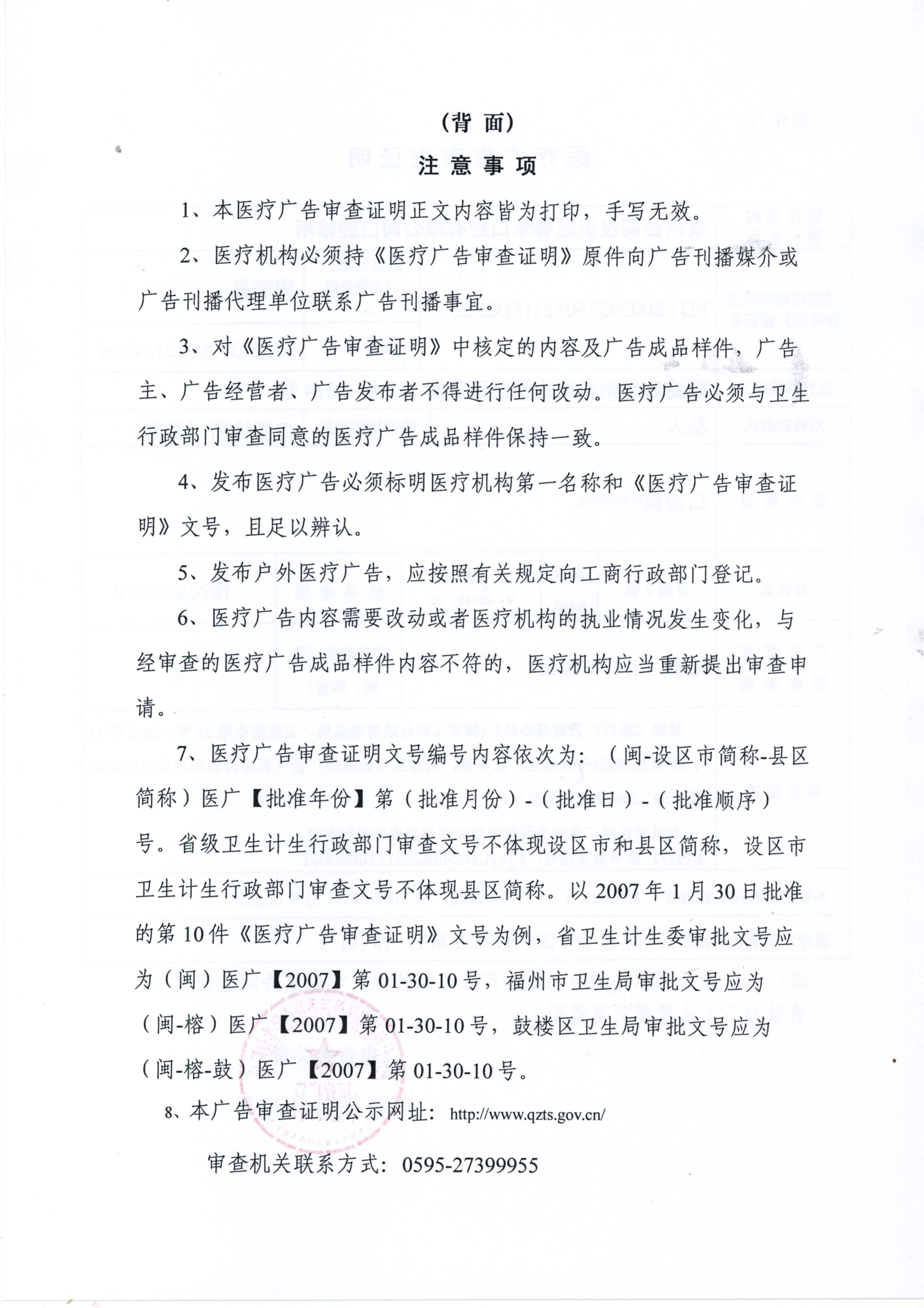 泉州台商投资区春禾口腔有限公司口腔诊所医疗广告审查证明公示