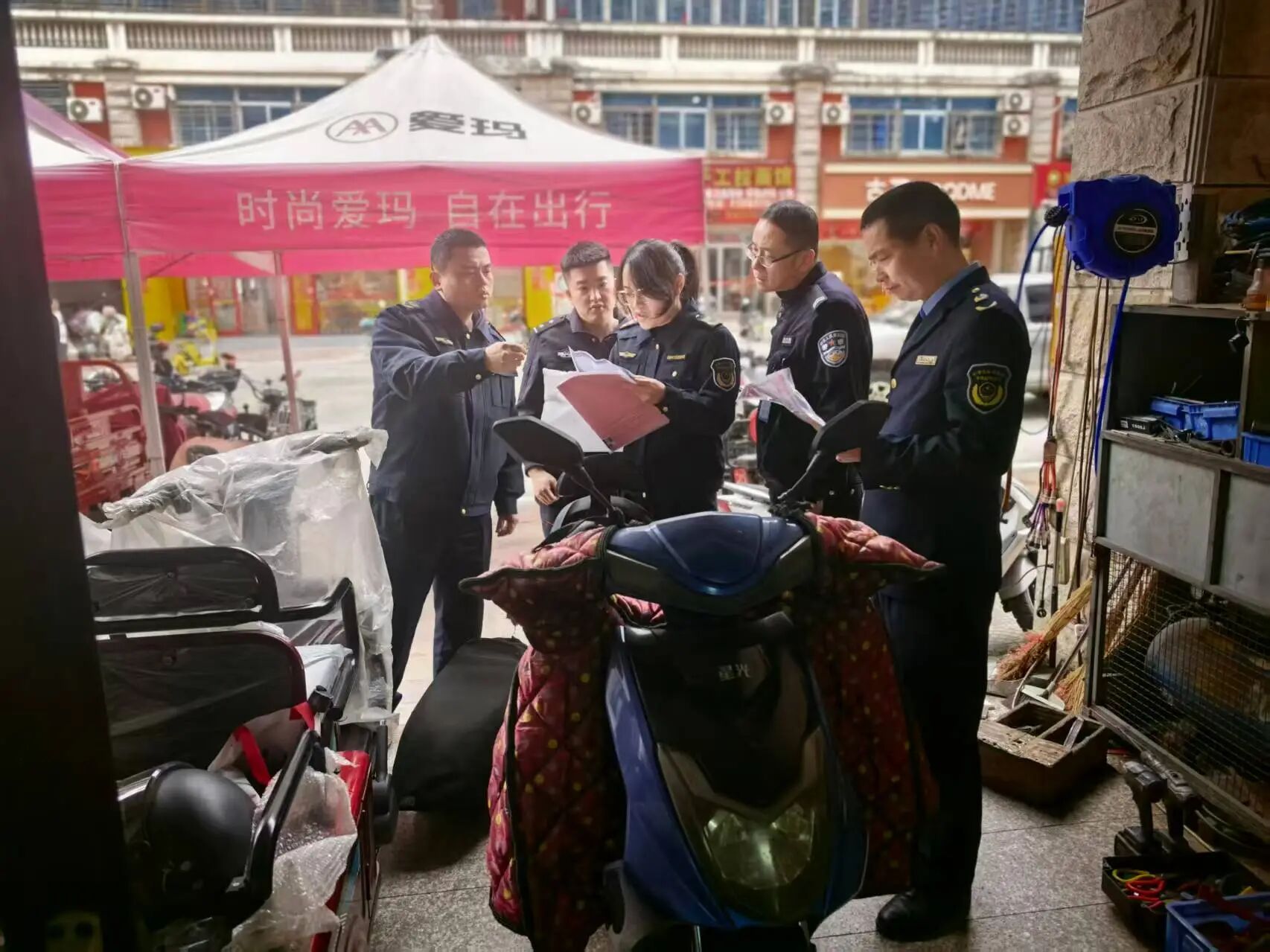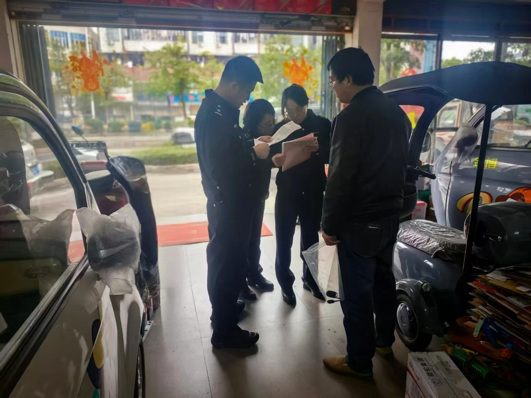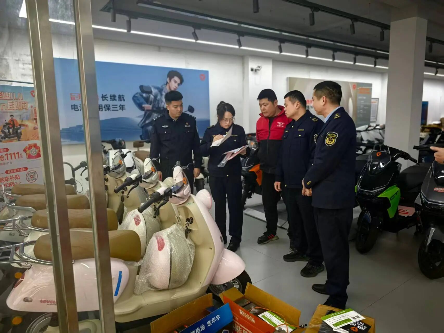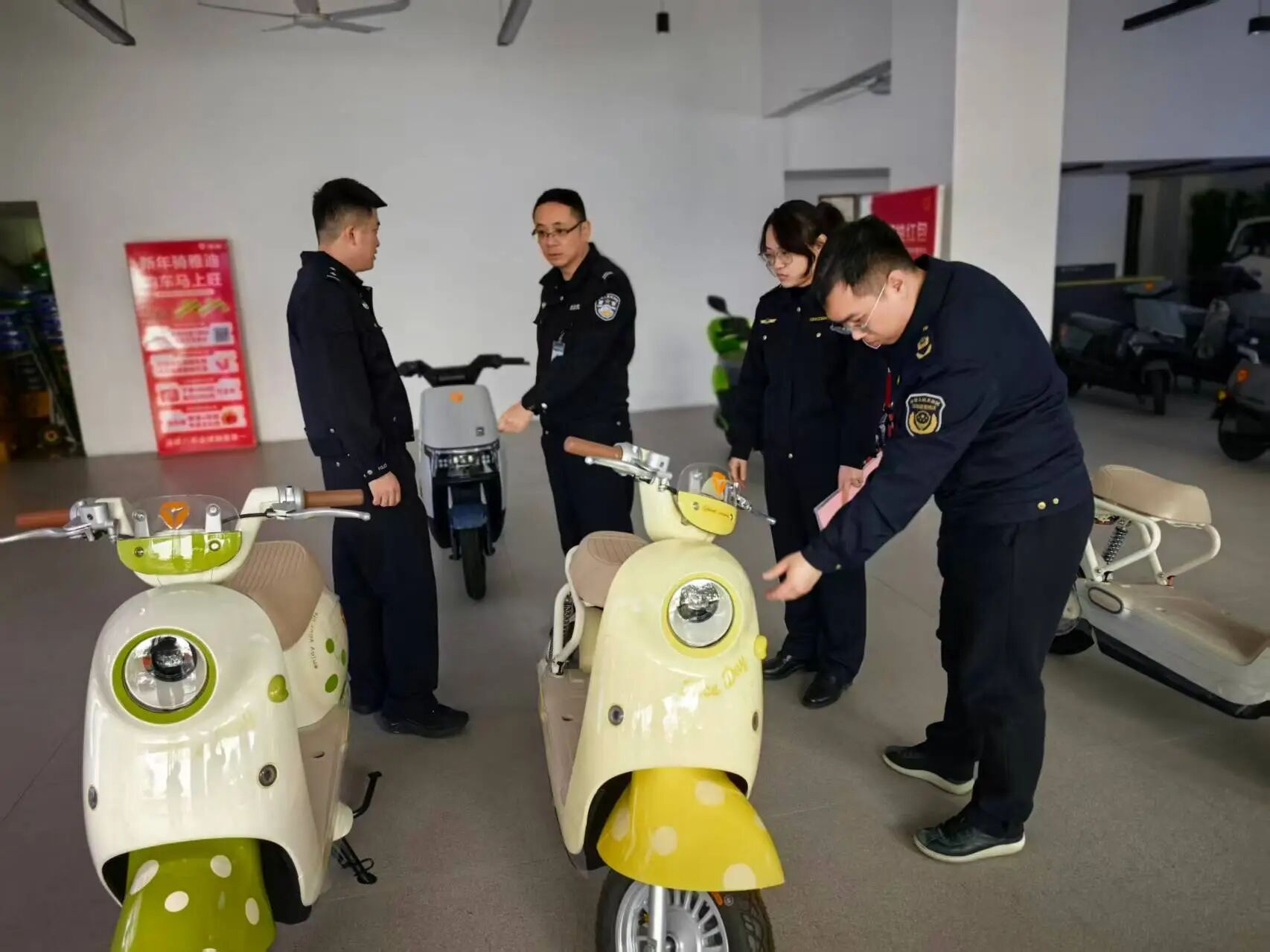 此次联合检查,共检查15家经营单位,重点检查在售电动自行车的3C认证标志、产品合格证、整车编码及车辆铭牌信息、是否存在非法改装、拼装、加装,营业执照是否上墙等情况。检查过程中,执法人员采取“检查+宣传”的方式,通过对比讲解新旧国标差异等方式,向经营者详细阐明新国标电动车在整车质量、最高车速、防篡改等方面的核心要求。同时,引导经营者自觉落实产品质量主体责任,督促经营者守法诚信经营,确保产品来源可塑、质量合格,让消费者放心。