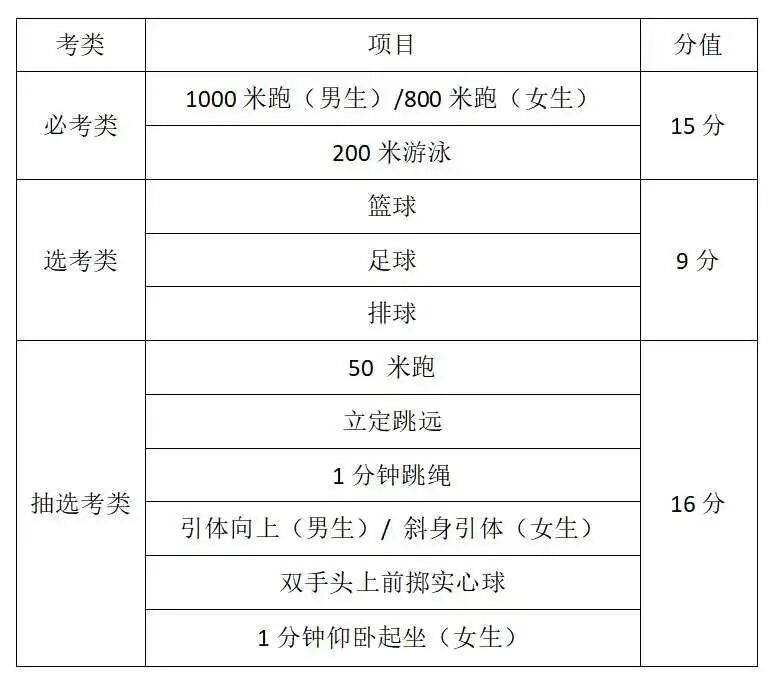 2.“三大球”抽考改选考:篮球、足球、排球“三大球”由抽考改为选考,由考生从三个项目中自选1项考试。