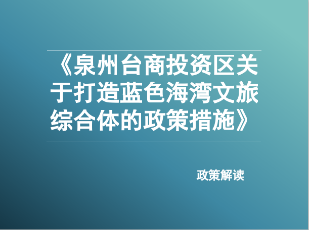 (图文解读)《泉州台商投资区关于打造蓝色海湾文旅综合体的政策措施》政策解读