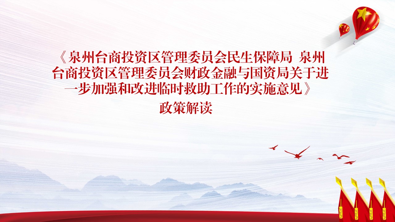 (图文解读)《泉州台商投资区管理委员会民生保障局 泉州台商投资区管理委员会财政金融与国资局关于进一步加强和改进临时救助工作的实施意见》政策解读