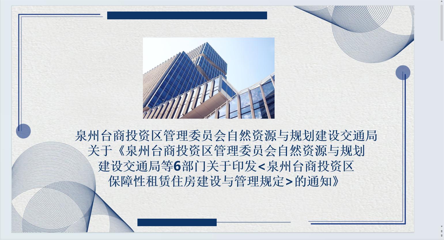 (图文解读)泉州台商投资区管理委员会自然资源与规划建设交通局关于《泉州台商投资区管理委员会自然资源与规划建设交通局等6部门关于印发<泉州台商投资区保障性租赁住房建设与管理规定>的通知》政策解读