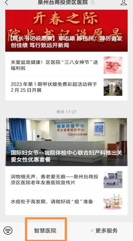 进入“泉州台商投资区医院微信公众号”进入“智慧医院”→“门诊服务”→右上角“刷卡时点击”就可以在泉州台商投资区医院就医全过程使用;实现扫码签到、就诊、检查、查询报告、门诊缴费、拿药、余额退款,查询专家排班等等。