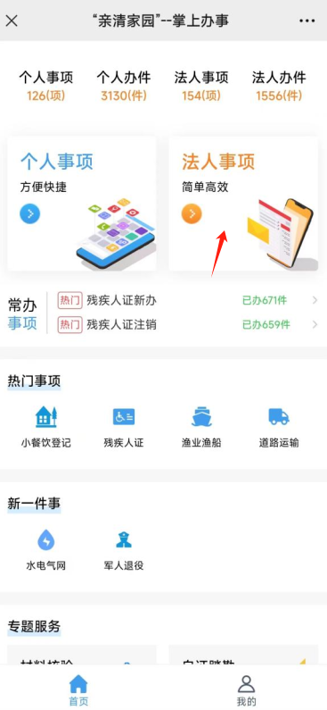 ①在公众号“亲清家园”首页点击便民服务(掌上办事)。