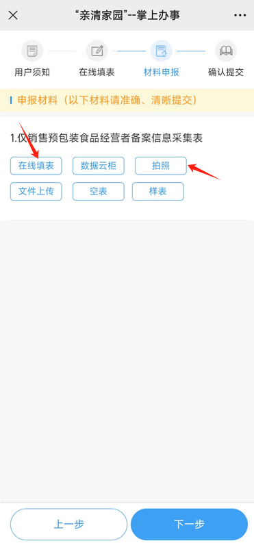 1、窗口办理流程:携带好资料提交至窗口,符合经营条件予以发放《仅销售预包装食品经营者备案信息采集表》。2、公众号“亲清家园”掌上办理流程。步骤: