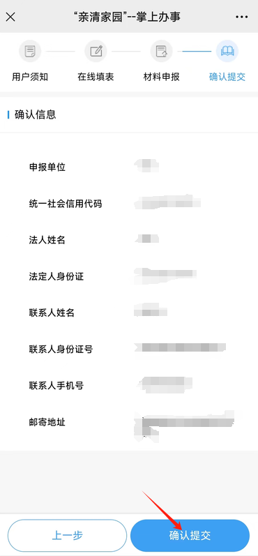 ④进入下一步,核对填报信息无误后点击“确认提交”。