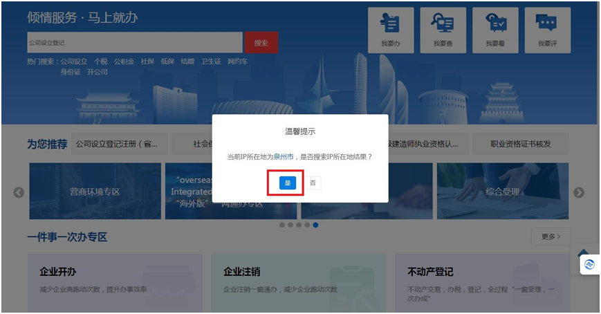 3、进入搜索结果页面后,查找到“公司注销登记注册(县级权限)”,可办地区选择“台商投资区”