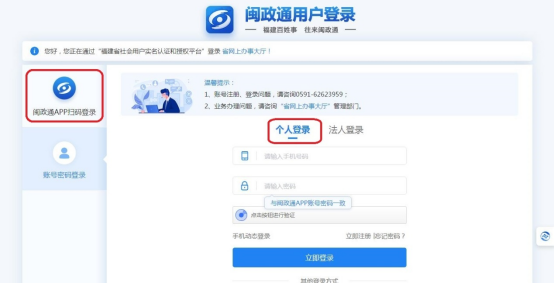 ②点击“账号密码登录”,选择“个人登录”,输入账号密码登录即可。(未注册账号的用户请点击立即注册,注册账号成功后可直接登录)