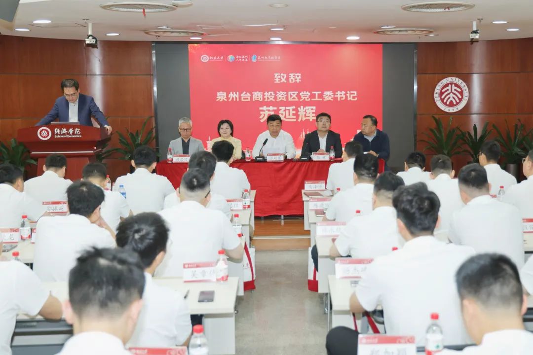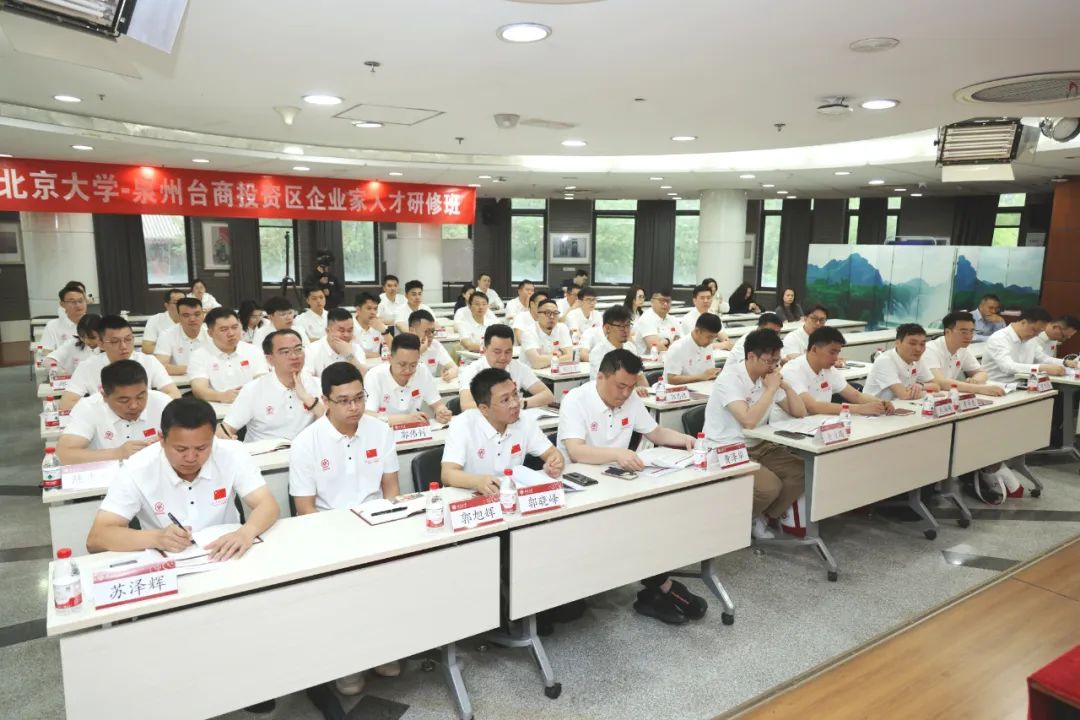开班式上,台商投资区党工委书记苏延辉代表区党工委、管委会,对北京大学的大力支持表示衷心的感谢,向授课专家和企业家学员表示欢迎。他指出,举办此次研修班是贯彻落实习近平总书记关于民营经济发展重要论述的具体行动,是持续深化拓展 “三争” 行动、打造 “两岸融合发展主阵地、高新产业发展新高地” 的重要举措,将进一步帮助企业家提升核心领导力、决策能力和创新驭变能力,促进企业代际传承与转型升级,为全区经济高质量发展注入新活力。 苏延辉强调,北京大学——泉州台商投资区企业家人才研修班搭建了与顶级专家学者面对面沟通交流的平台,机会难得,广大青年企业家要集中精力、静心潜学,甘当“小学生”、争当“优等生”,静下心来,集中心智,在课堂教学中碰撞思想、开拓思维,在实地考察中得到触动、获得启发,尽可能汲取更多的知识养分和实践经验。要学以致用、开创新局,立足台商投资区实际,从学到的理论里找办法,从看到的经验中找对策,在研讨最新发展趋势时谋划传统制造业的“智变”路径。要严守纪律、保持形象,严格遵守学习培训纪律要求,确保圆满完成各项学习任务,充分展示台商投资区企业家人才的良好形象,让此次学习成为一趟收获满满的研学之旅、一场启迪思维的精神盛宴。 北京大学经济学院院长张辉在致辞中介绍了北京大学经济学院的成长历程、与中国经济学发展的紧密联系和学院为研修班课程做的充分准备。他表示,当前,我国民营经济发展前景广阔、大有可为,广大民营企业和民营企业家大显身手正当其时。北京大学经济学院积极贯彻全国两会精神和学校“科技创新年”战略布局,通过本期研修班帮助青年企业人才强化理论武装、厚植家国情怀、培育创新精神、传承中华优秀传统文化,助力企业在“人工智能+”时代抓住机遇、应对挑战,为推进中国式现代化作出新的更大贡献。