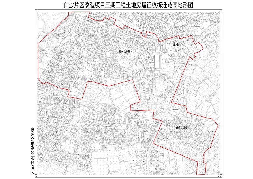 涉及洛阳镇西吟头自然村、井吟自然村、增垵村范围的房屋及其土地,具体征收范围以泉州台商投资区白沙片区改造项目三期工程土地房屋征收拆迁红线图为准。