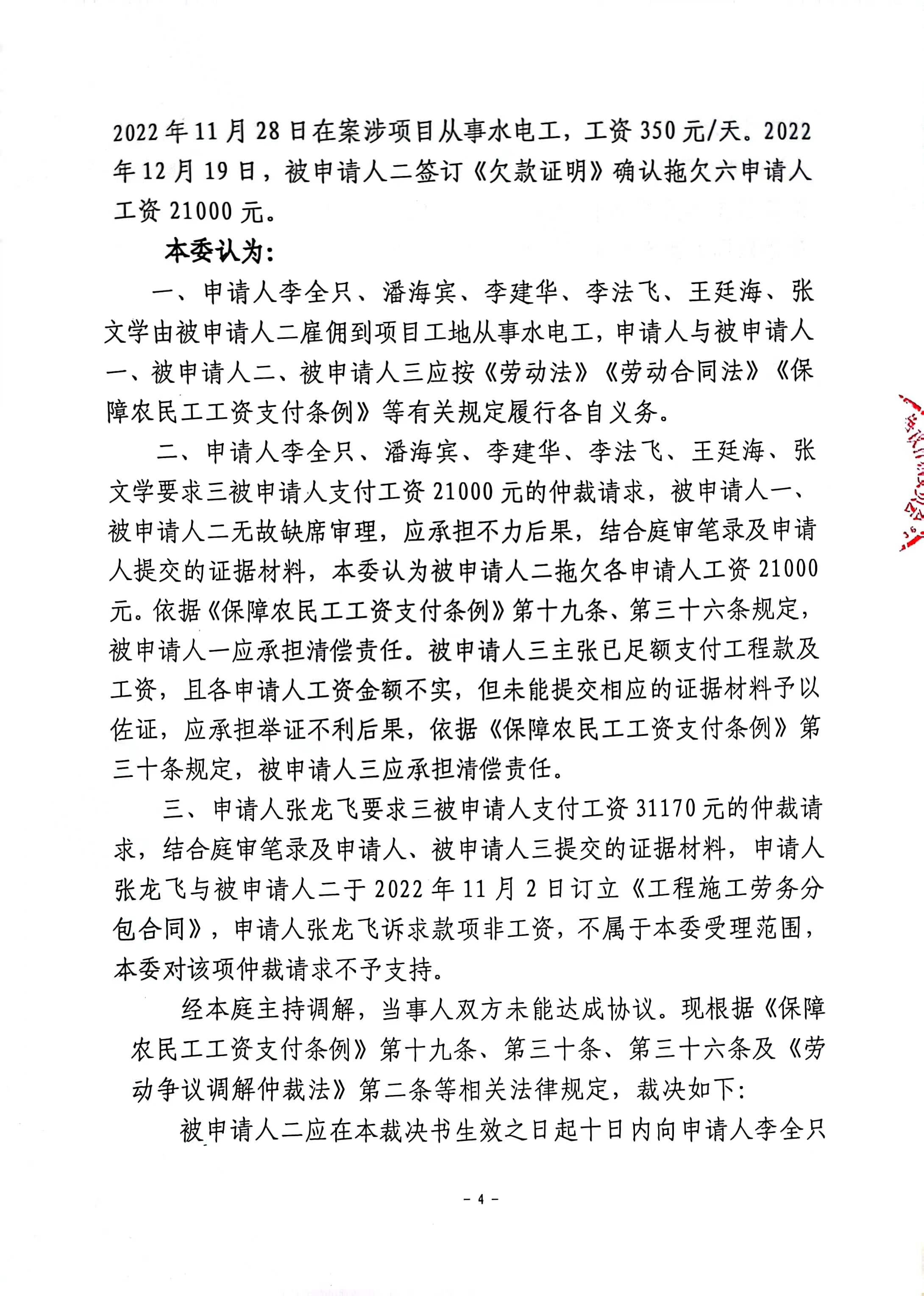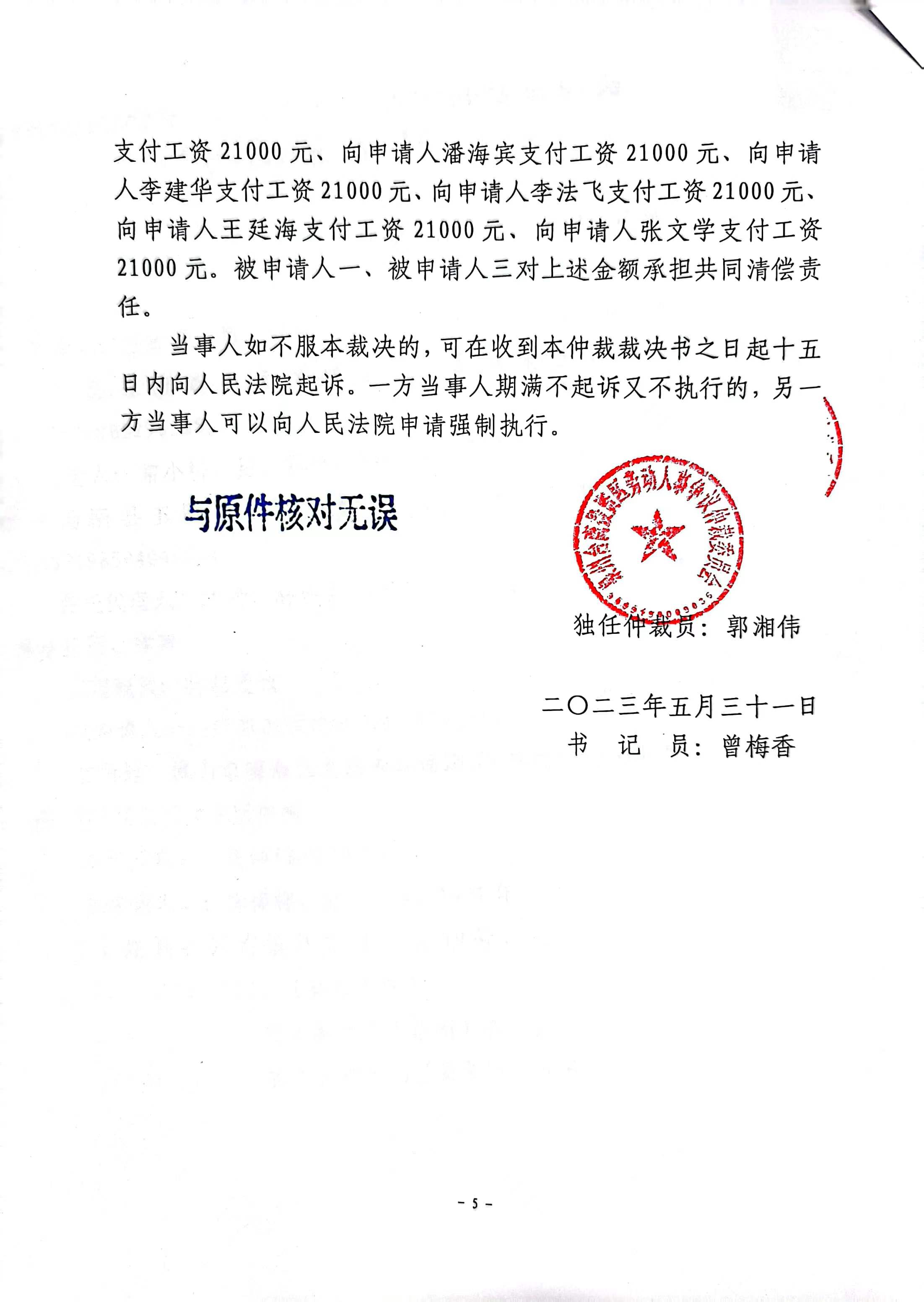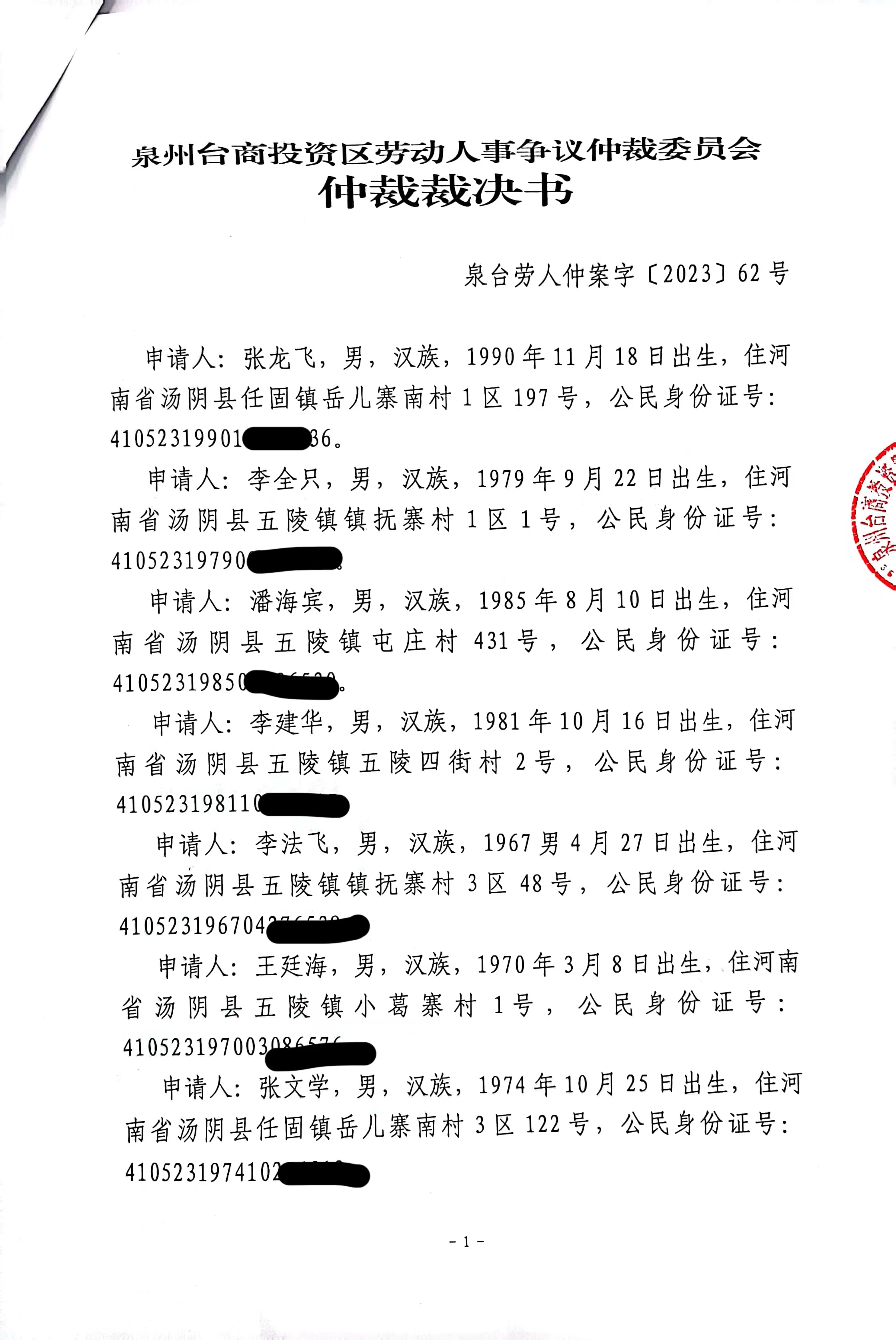 关于张龙飞等7人诉徐建祥、广东杰顺建设工程有限公司、中建新疆建工(集团)有限公司仲裁文书(泉台劳人仲案字[2023]62号)的公告
