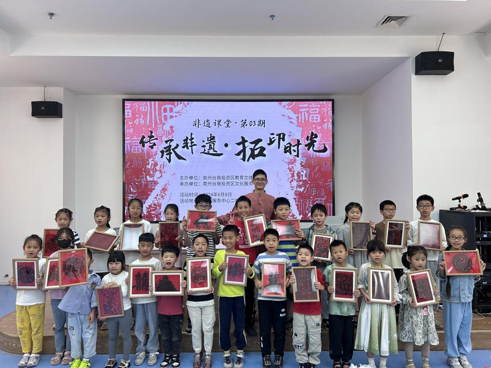 6月8日,在泉州台商投资区文化服务中心二楼多功能厅举办“非遗课堂”系列之“传承非遗·拓印时光”主题活动。黄宝辉老师现场讲述了拓印技术的传承、拓印工具的用途、拓印内容及材质,并且根据拓印步骤,一步步指导大家进行拓印。在亲身实践中,大家深入体会了传拓的意义,感受到属于非遗的独特魅力。