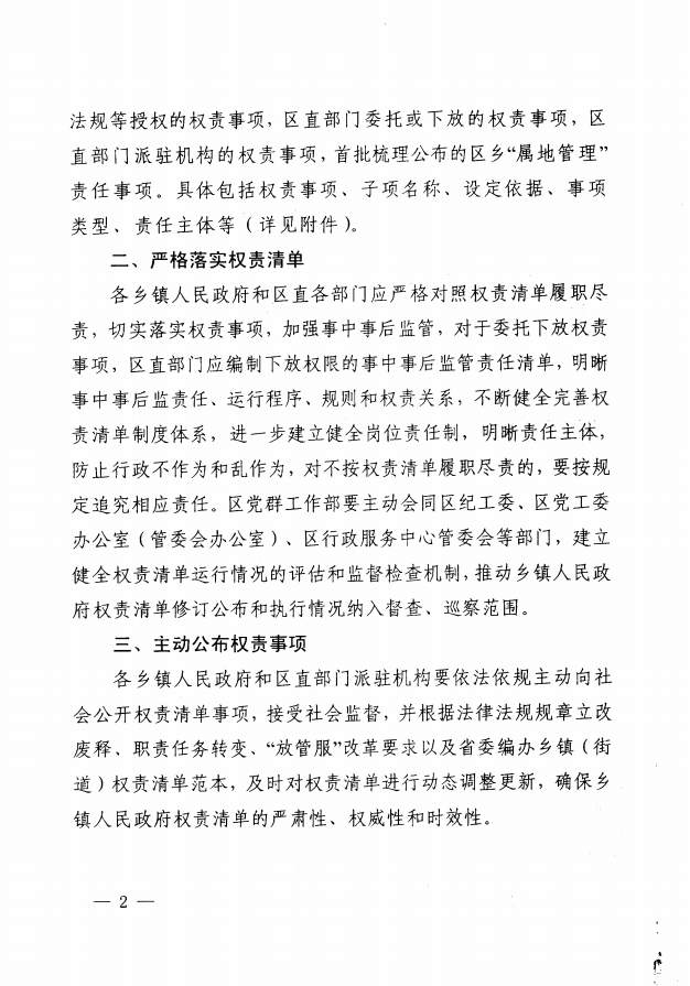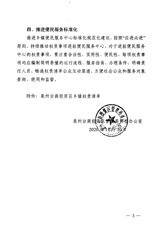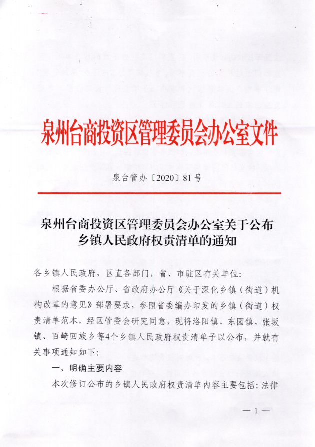 泉州台商投资区管理委员会办公室关于公布乡镇人民政府权责清单的通知