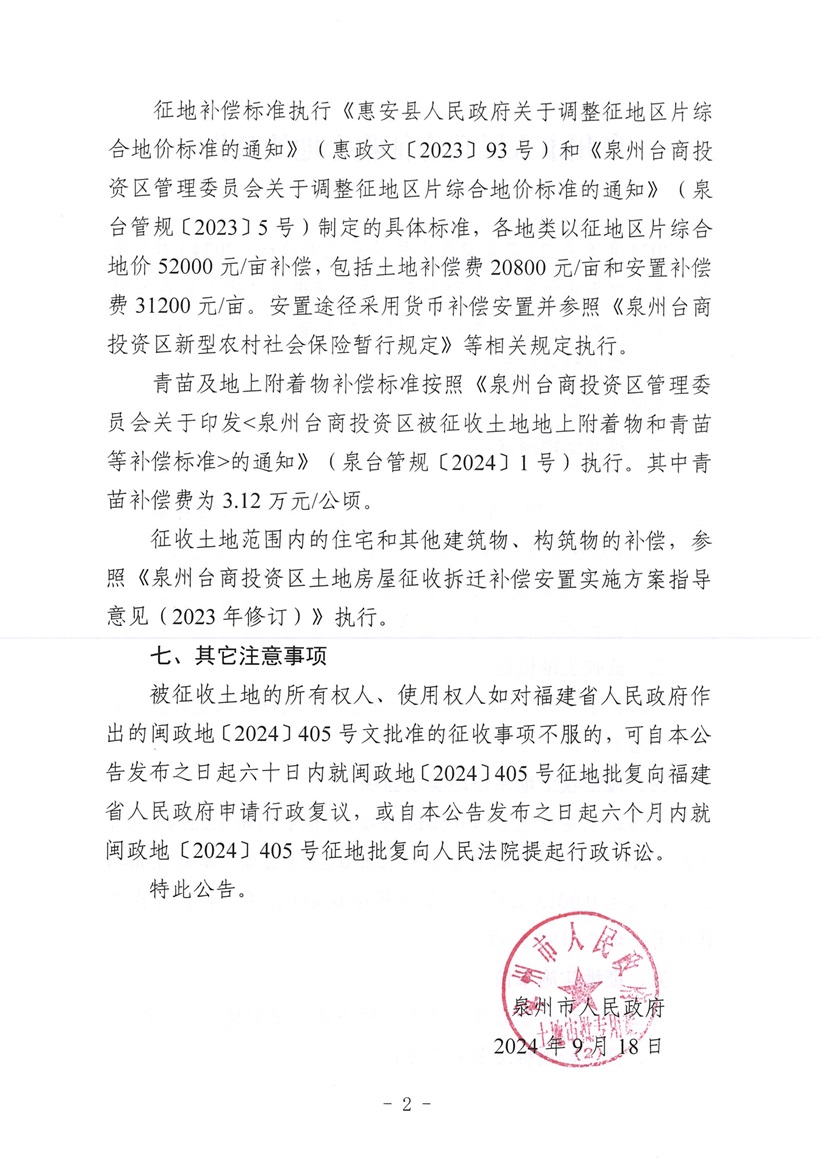 泉州市2024年第二十二批次征收土地的公告