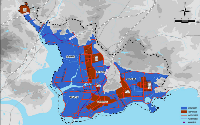 洛阳镇行政边界→东部山体绿地自然边界→杭深铁路 |