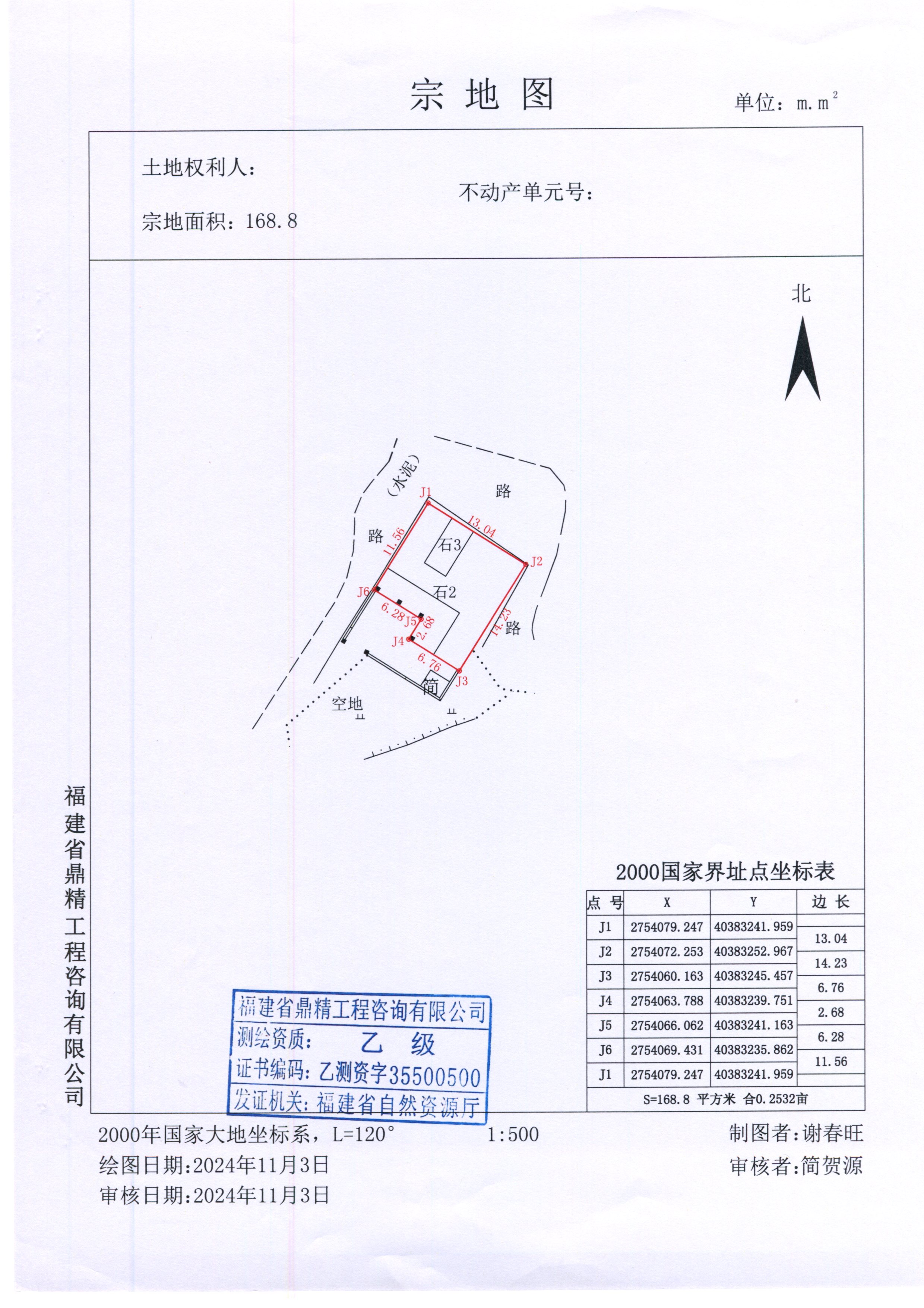 土地使用面积:168.8㎡、房屋建筑面积:354.65㎡ |