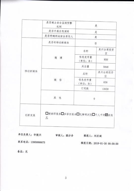 2017年泉州台商投资区网站工作年度报表
