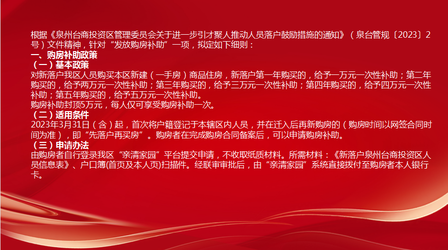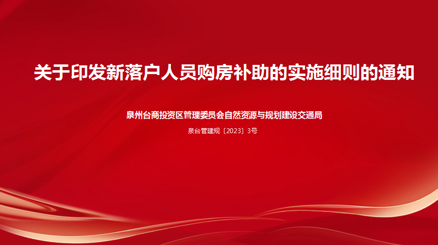 《泉州台商投资区管理委员会自然资源与规划建设交通局关于印发新落户人员购房补助的实施细则的通知》政策解读