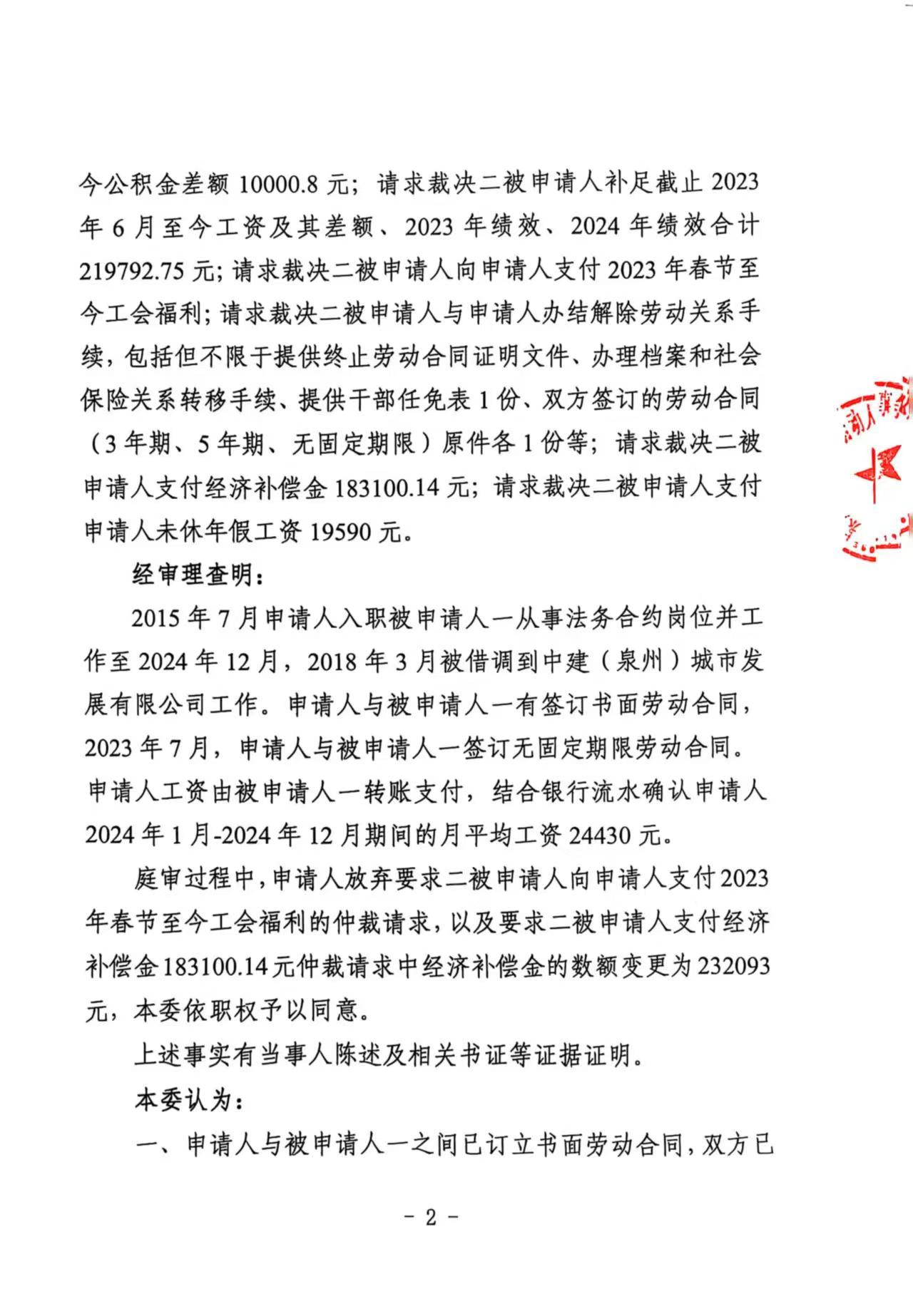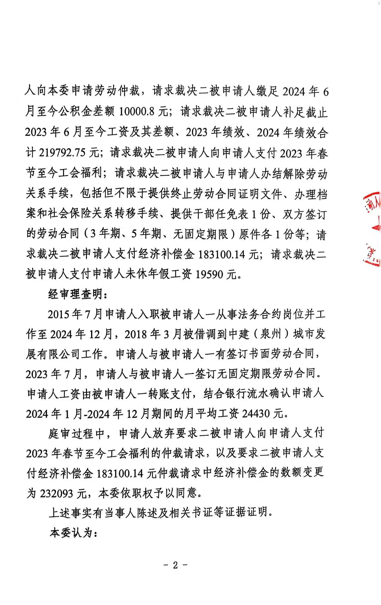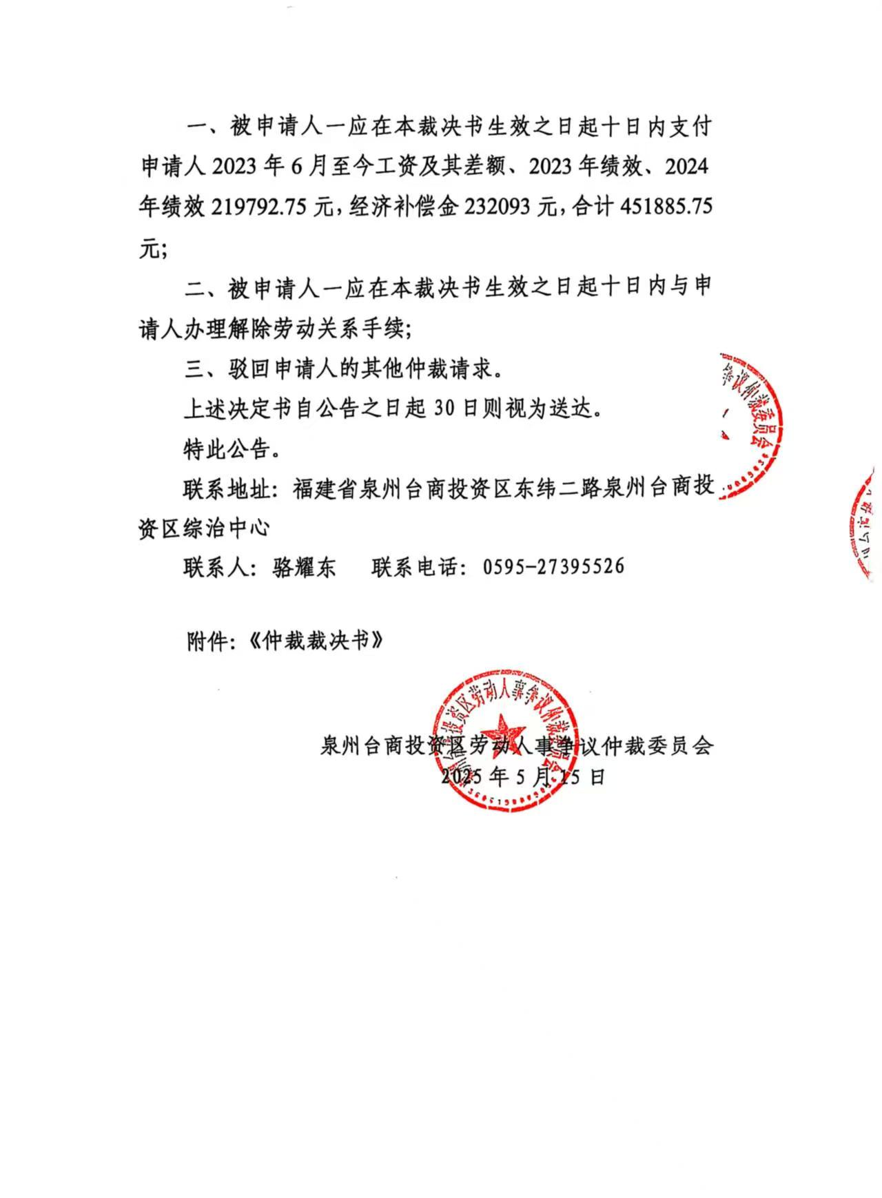 关于黄建林诉中国建筑第七工程局有限公司、中国建筑第七工程局有限公司福建分公司(泉台劳人仲案字[2025]36号)裁决书的公告