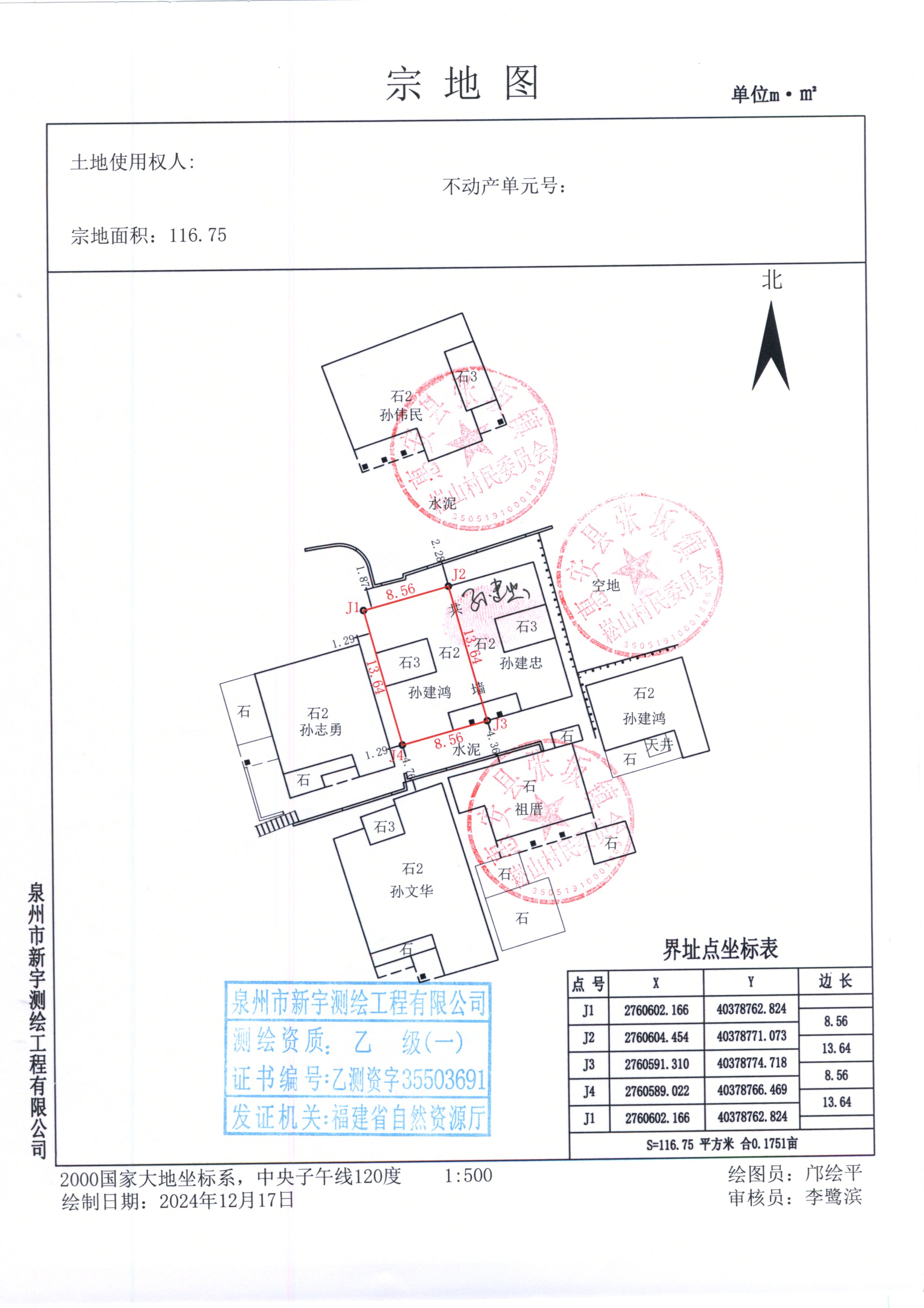 土地使用面积:116.75㎡ 建筑面积:250.91㎡ |